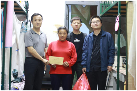 2017年11月8日下午5;30,化能蘑菇视频 党总支书记君光与辅导员张博老师组织前往学校后勤楼慰问贫困户。