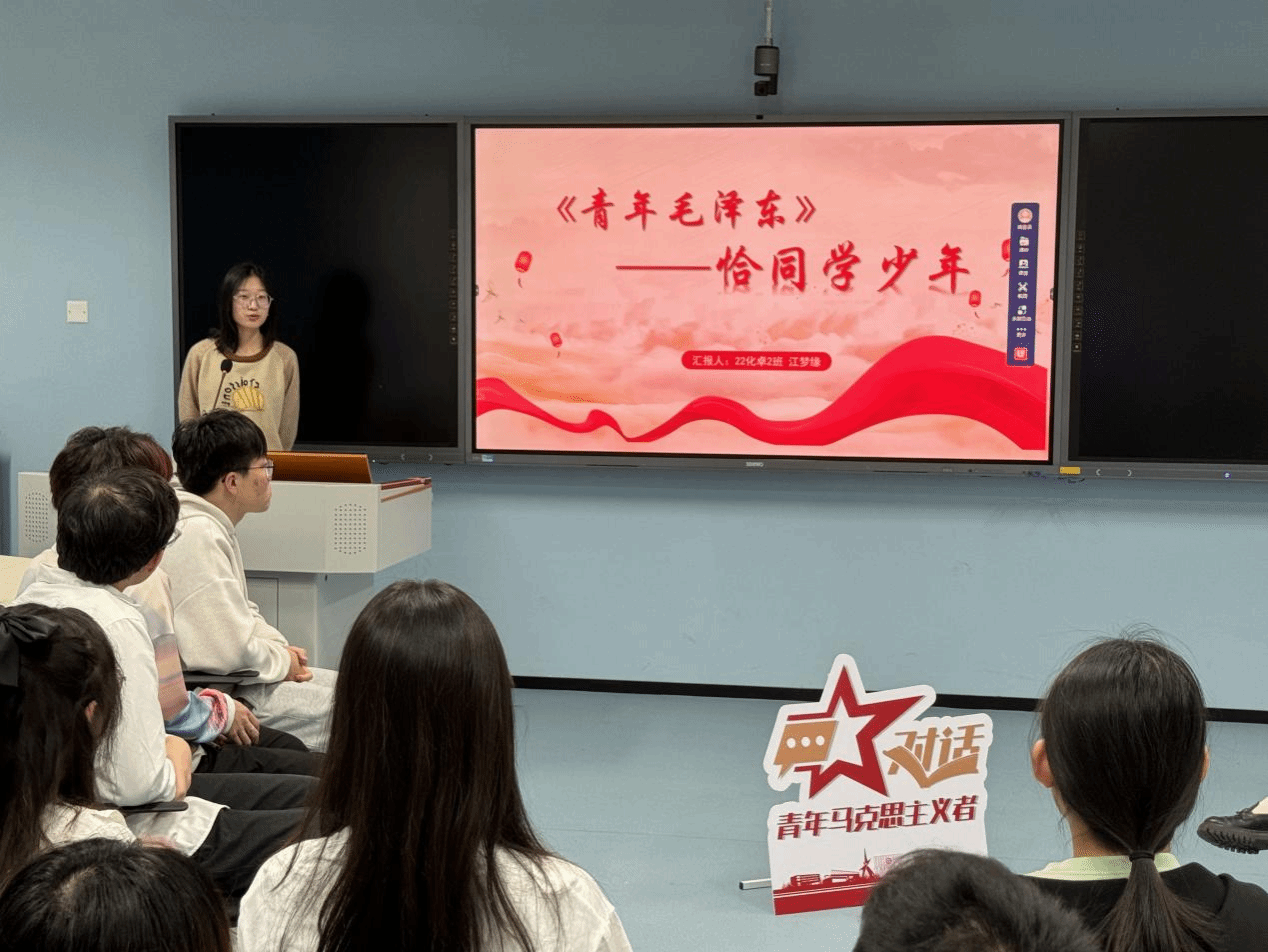 第二期“对话青年马克思主义者”读书分享会共读书籍为《青年毛泽东》。分享会伊始,刘哲带领大家学习了《习近平在纪念毛泽东同志诞辰130周年座谈会上的讲话》,深化了对毛泽东同志的丰功伟绩和毛泽东思想的历史地位的认识。应用化学系学生苏维恩等6位入党积极分子分享了各自阅读《青年毛泽东》书本篇章的体验与心得,深切地感受到老一辈无产阶级革命家的青春风采,通过从伟人身上汲取智慧和力量,更加坚定了奋楫笃行、乘风破浪的信心决心。