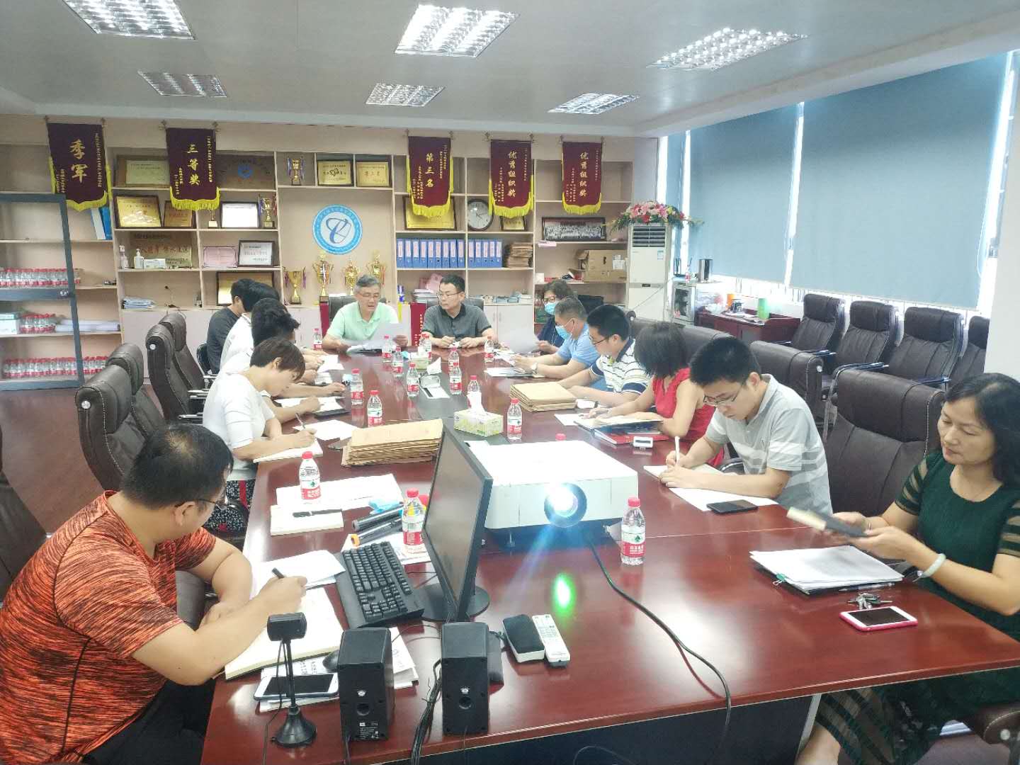 党委在综合实验楼12L103会议室举行党委理论学习中心组集中学习,学习的主题为》《广东省学校安全条例》。会议由学院党委书记夏勇主持,学院党委理论学习中心组成员、中层干部、党支部书记、学院办公室主任和组织员参加会议;工作联系组组长何献青带领组员刘国阳老师列席会议。