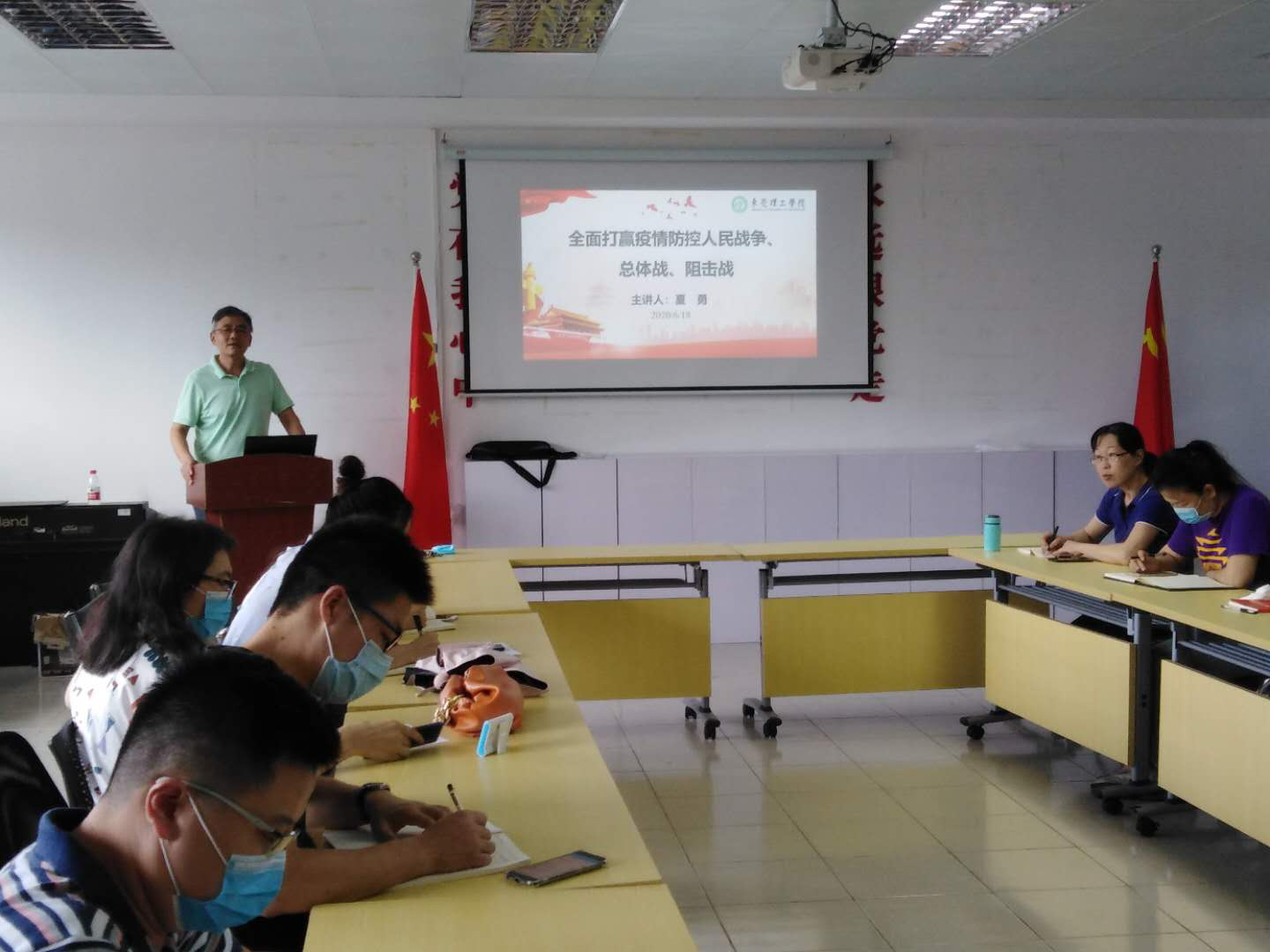 党委书记夏勇同志给全体支部党员上了一堂精彩的党课。党课的主题是“全面打赢疫情防控人民战争、总体战、阻击战”。