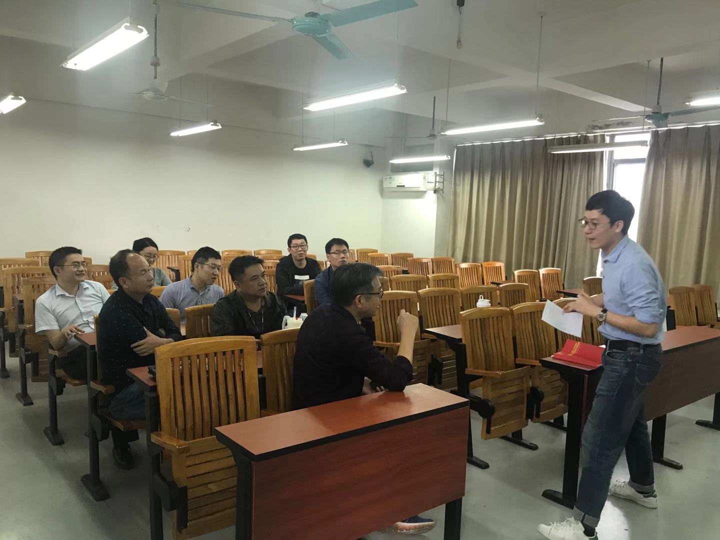 会议由学院党委书记夏勇主持,邀请了校长特聘人才,发展规划处副研究员,学校第三次党代会报告起草核心成员胡文龙博士作专题宣讲,此次会议的主题是:《学习十九届四中全会和学校第三次党代会精神》
