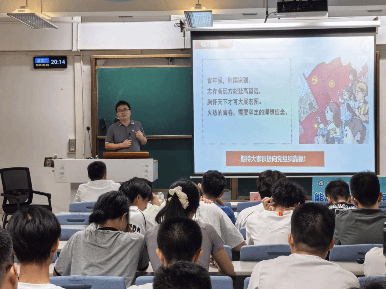 在松山湖校区课室6E-205、6F-301、6F-302组织开展2025级新生入党启蒙教育活动。化学工程系学生党支部书记涂叶满、能源与动力工程系学生党支部书记张博、应用化学系学生第二党支部书记王馨以及学生党员代表出席,2025级本科新生参加。