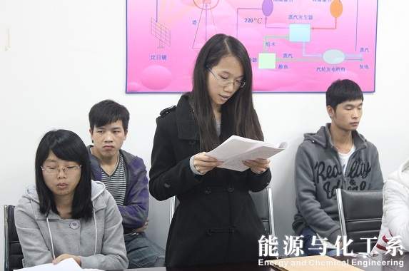 2012年12月11日晚上7点,能源与化工系党总支在12J304顺利召开预备党员转正暨接收预备党员大会。党总支副书记张敏,学生党支部所有党员出席本次大会,会议由能源与化工系学生党支部书记谢真葵主持。