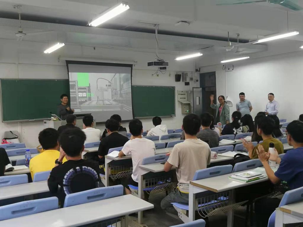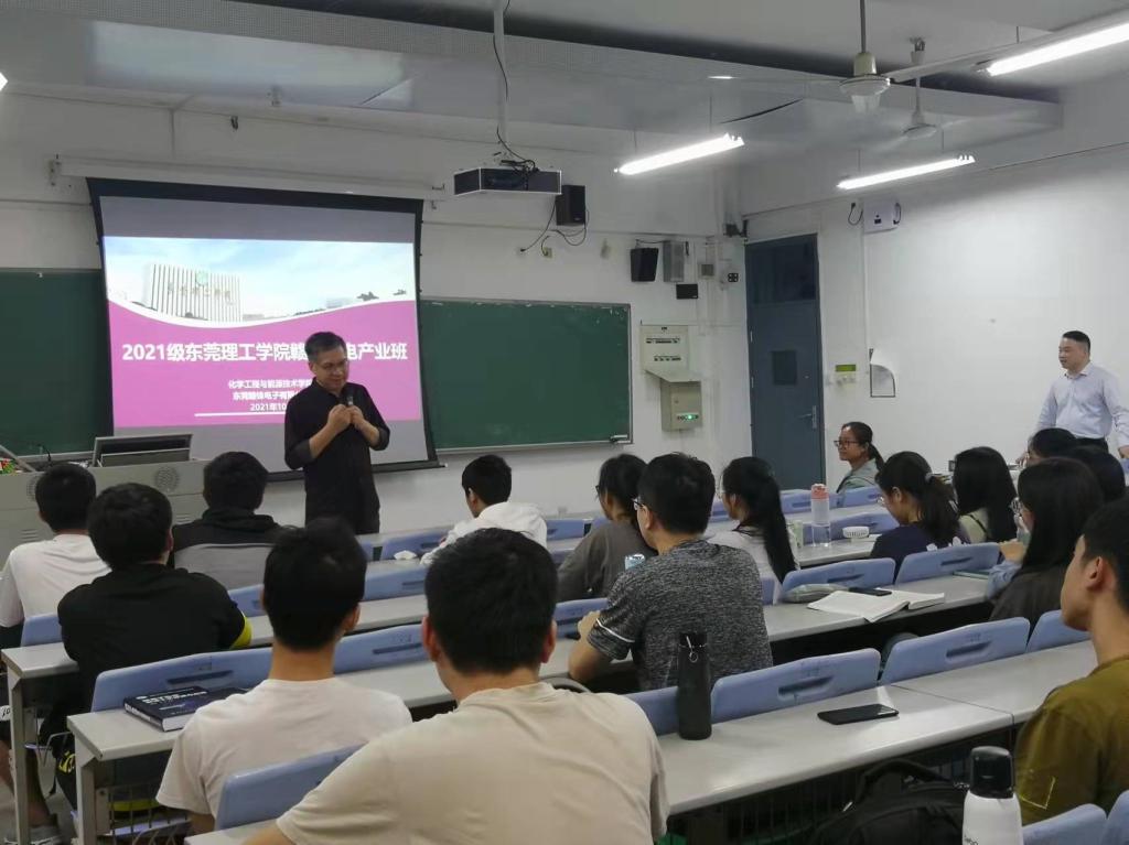20211027日下午,由东莞赣锋电子有限公司副总经理等高层和学院专任教师共同组建的产业课程教学团队为产业班同学讲课。在开课前,双方就该班级的课程开展方式、产业课堂、教助学金资助、毕业设计等进行了深入详细的讨论,已初步达成了较为可行的实施方案。