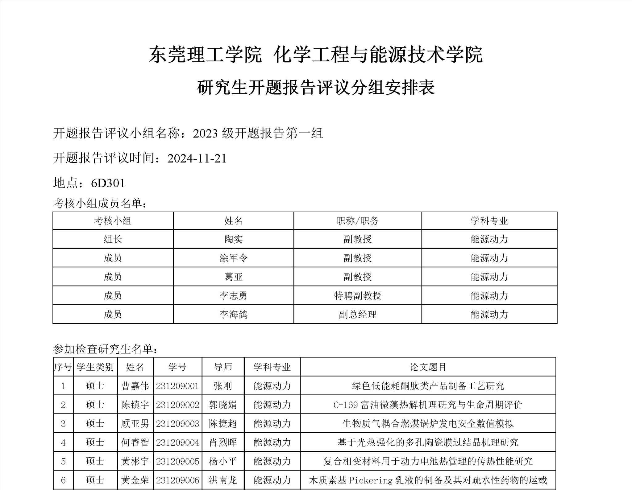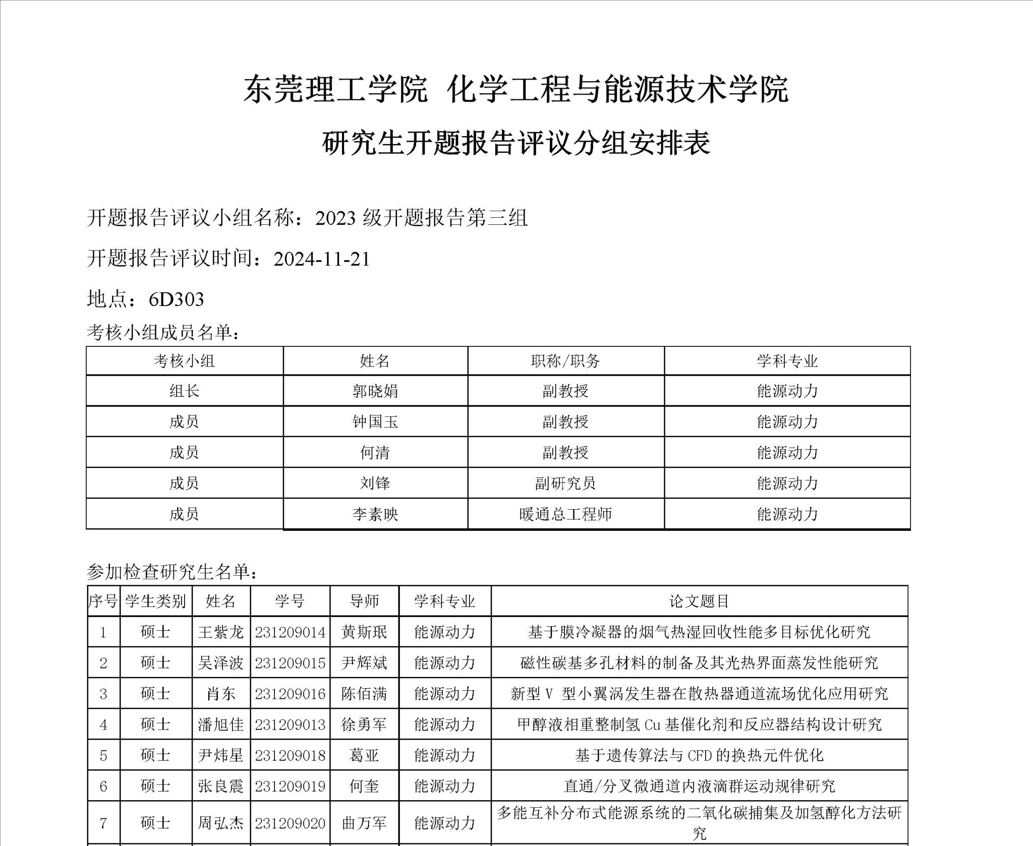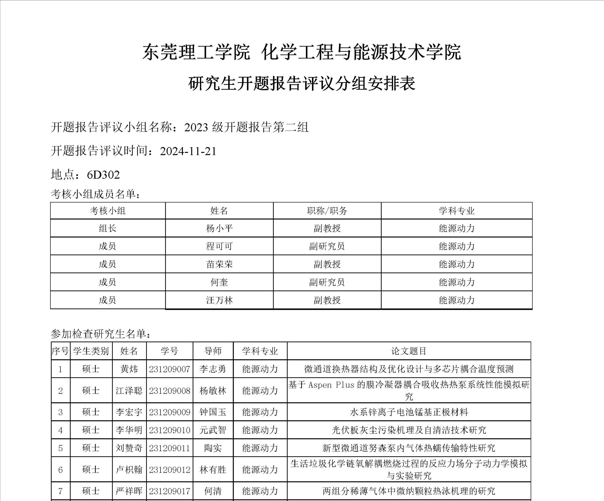 蘑菇视频 能源动力学位点2023级研究生开题报告评议安排如下: