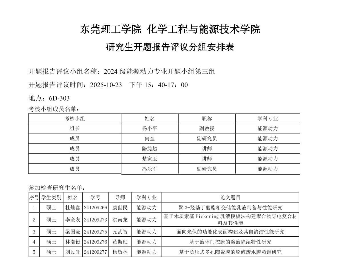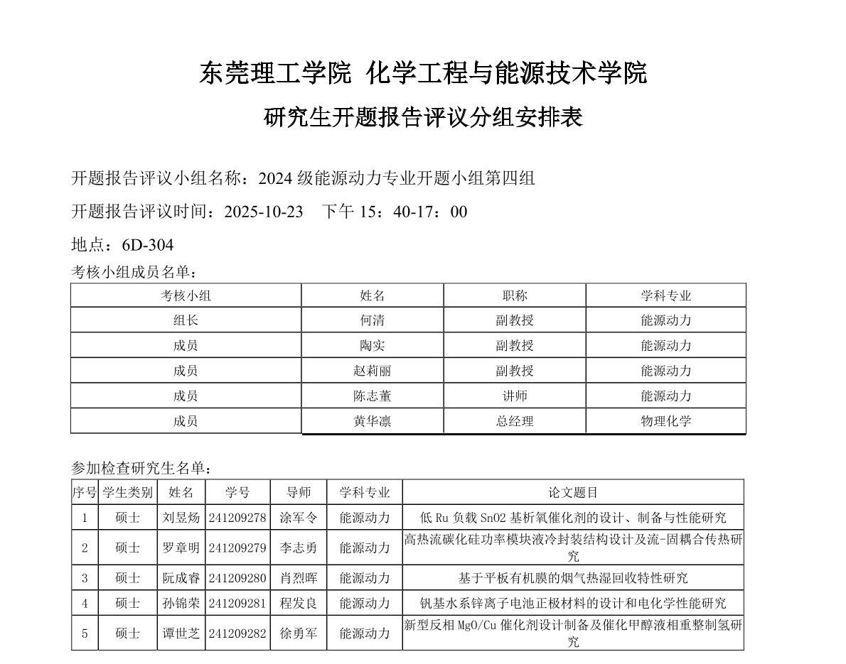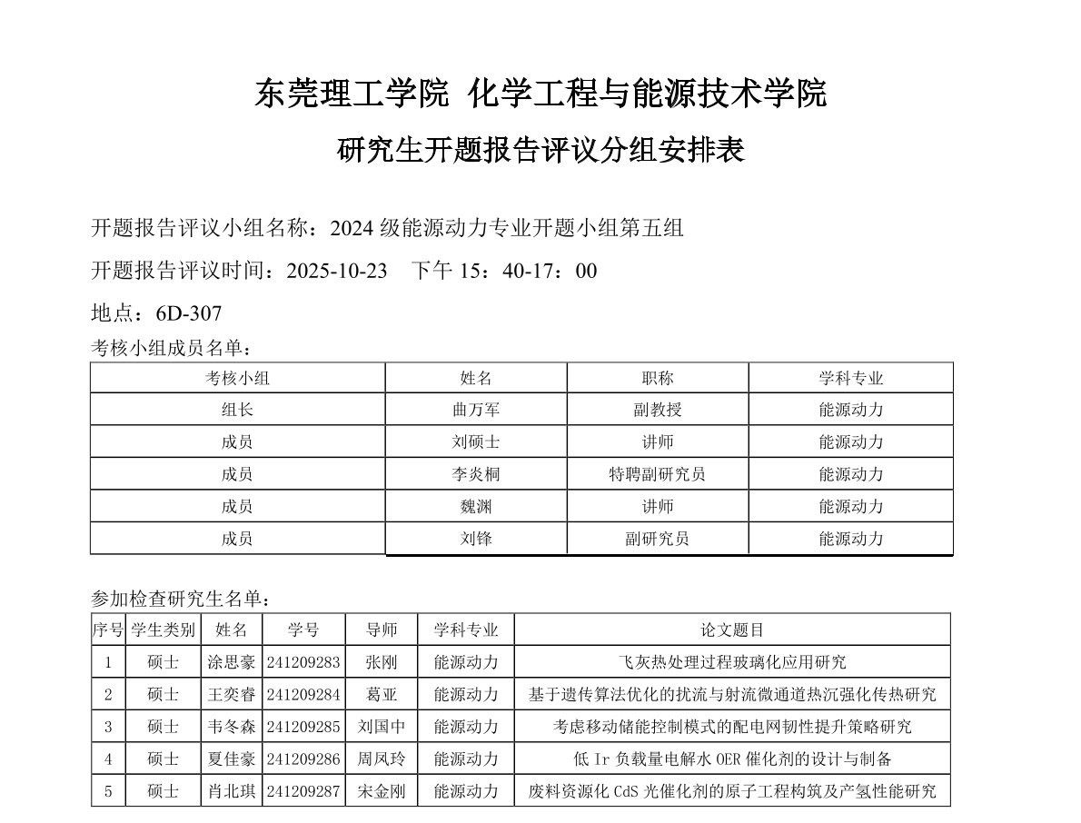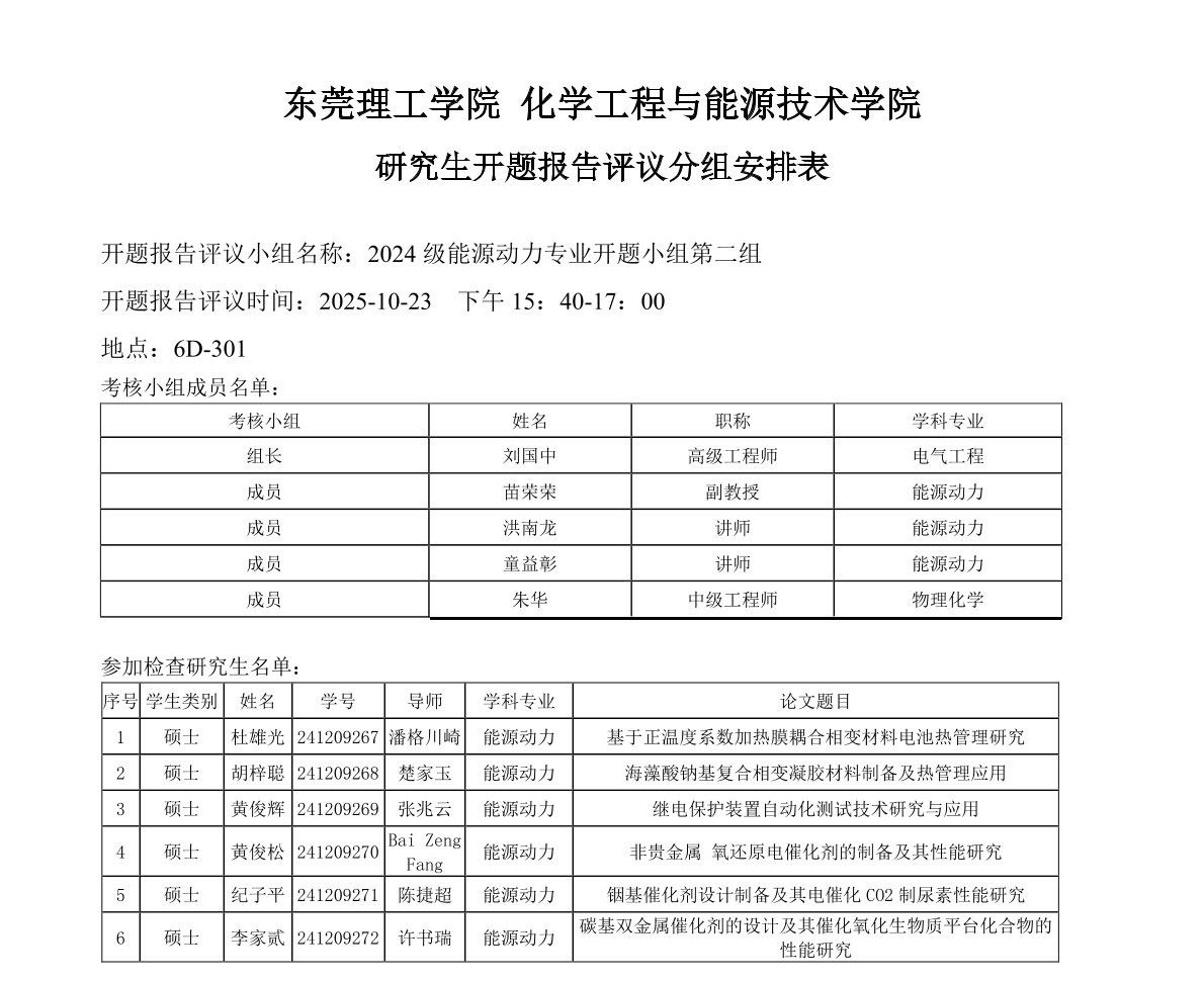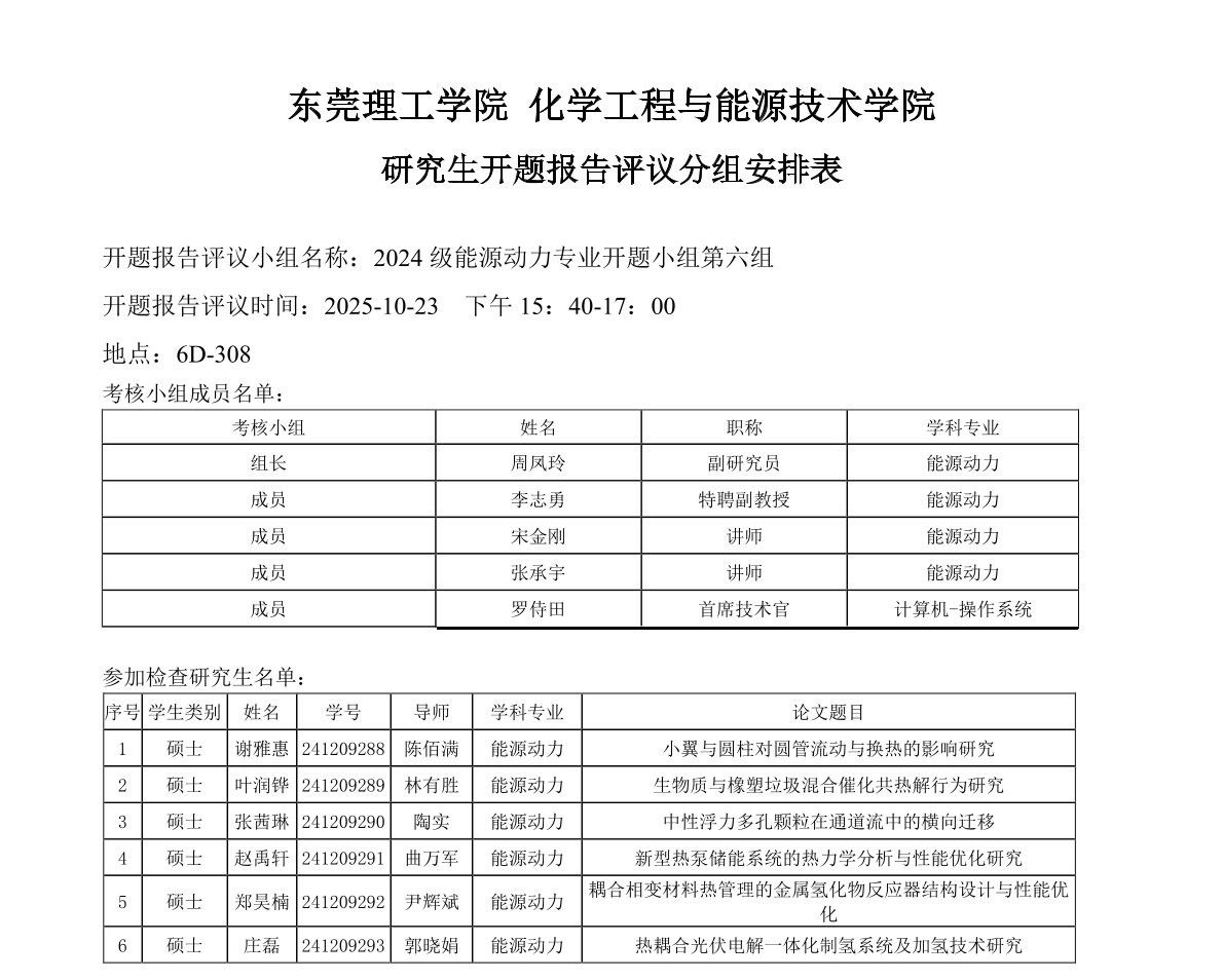 蘑菇视频 能源动力学位点2024级研究生开题报告评议安排如下:
