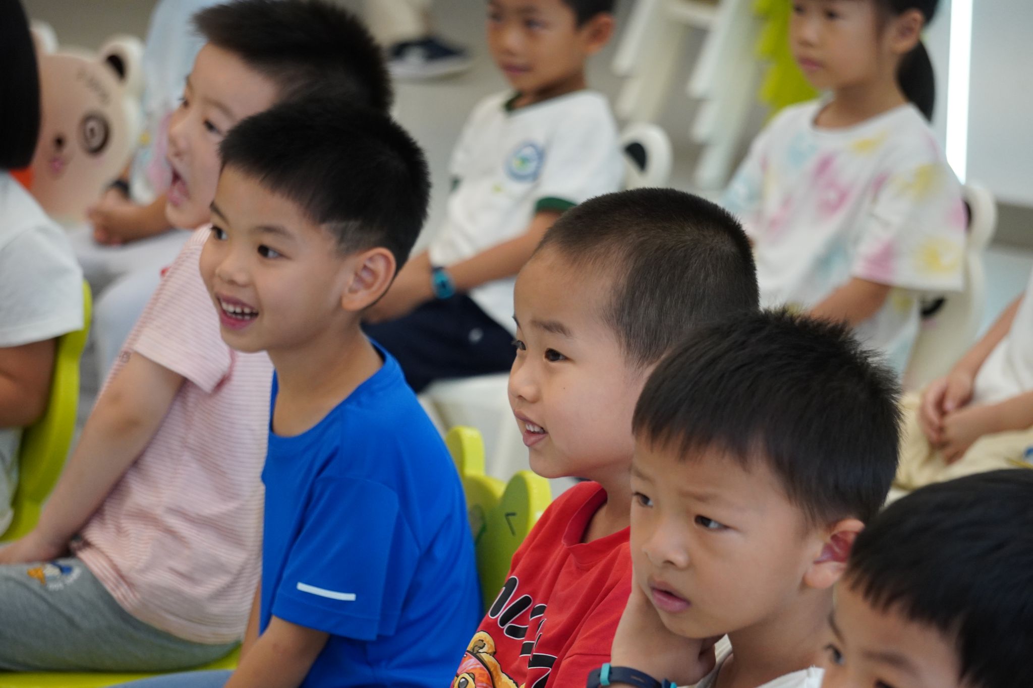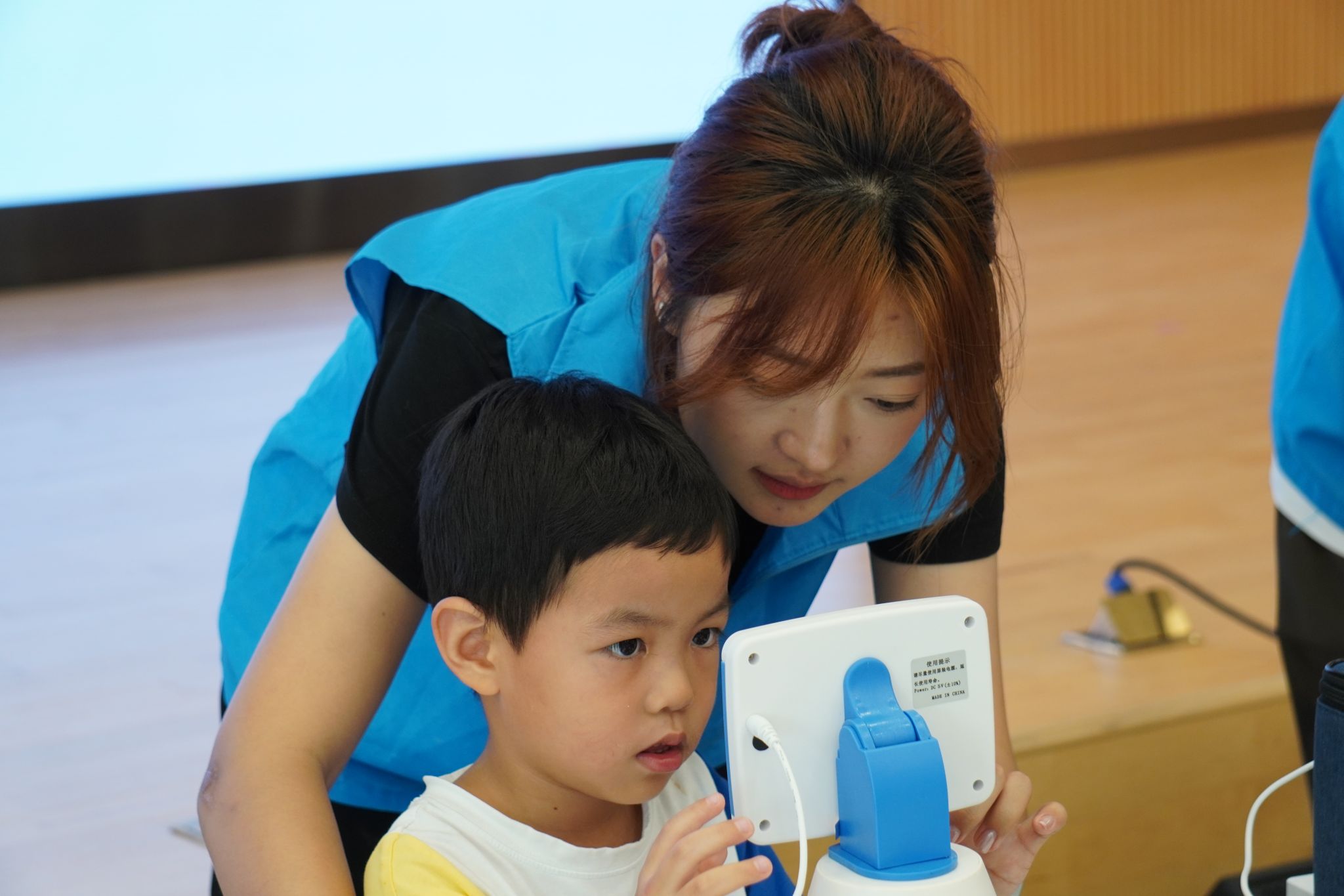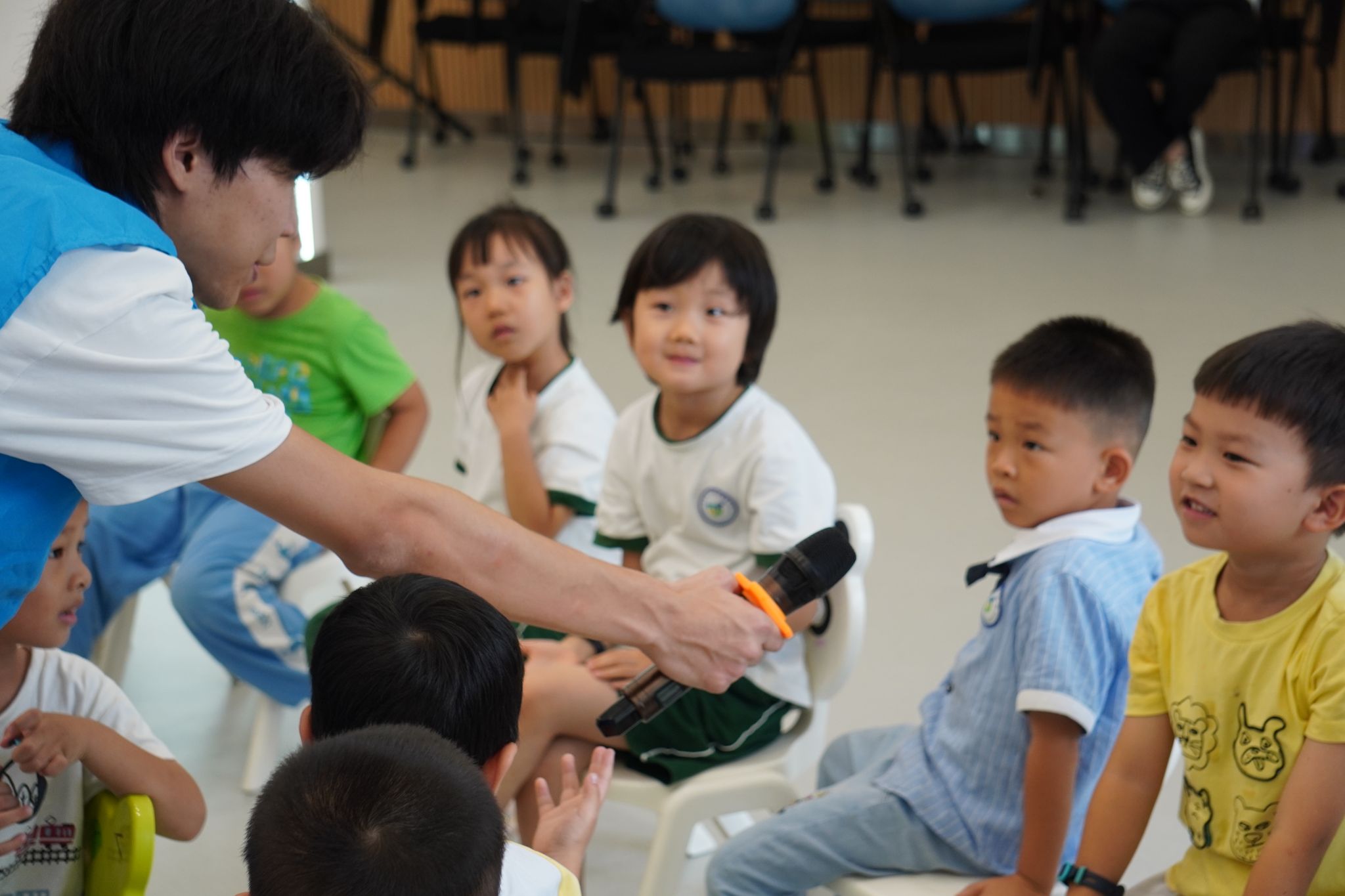 5月9日,在国韵幼儿园的演讲教室里,志愿者联合蘑菇视频
