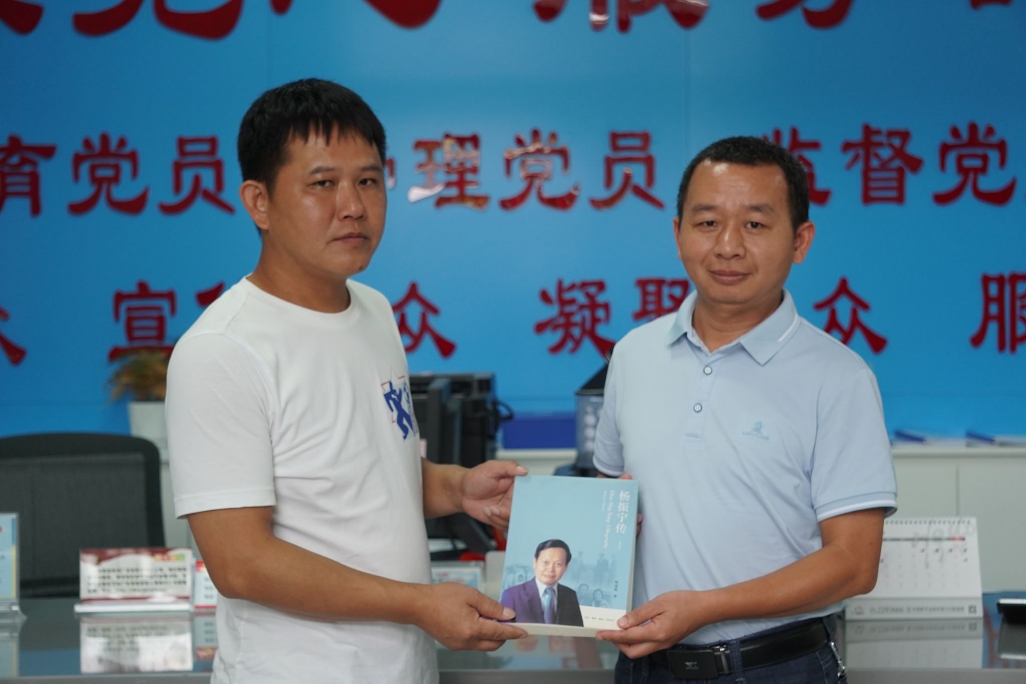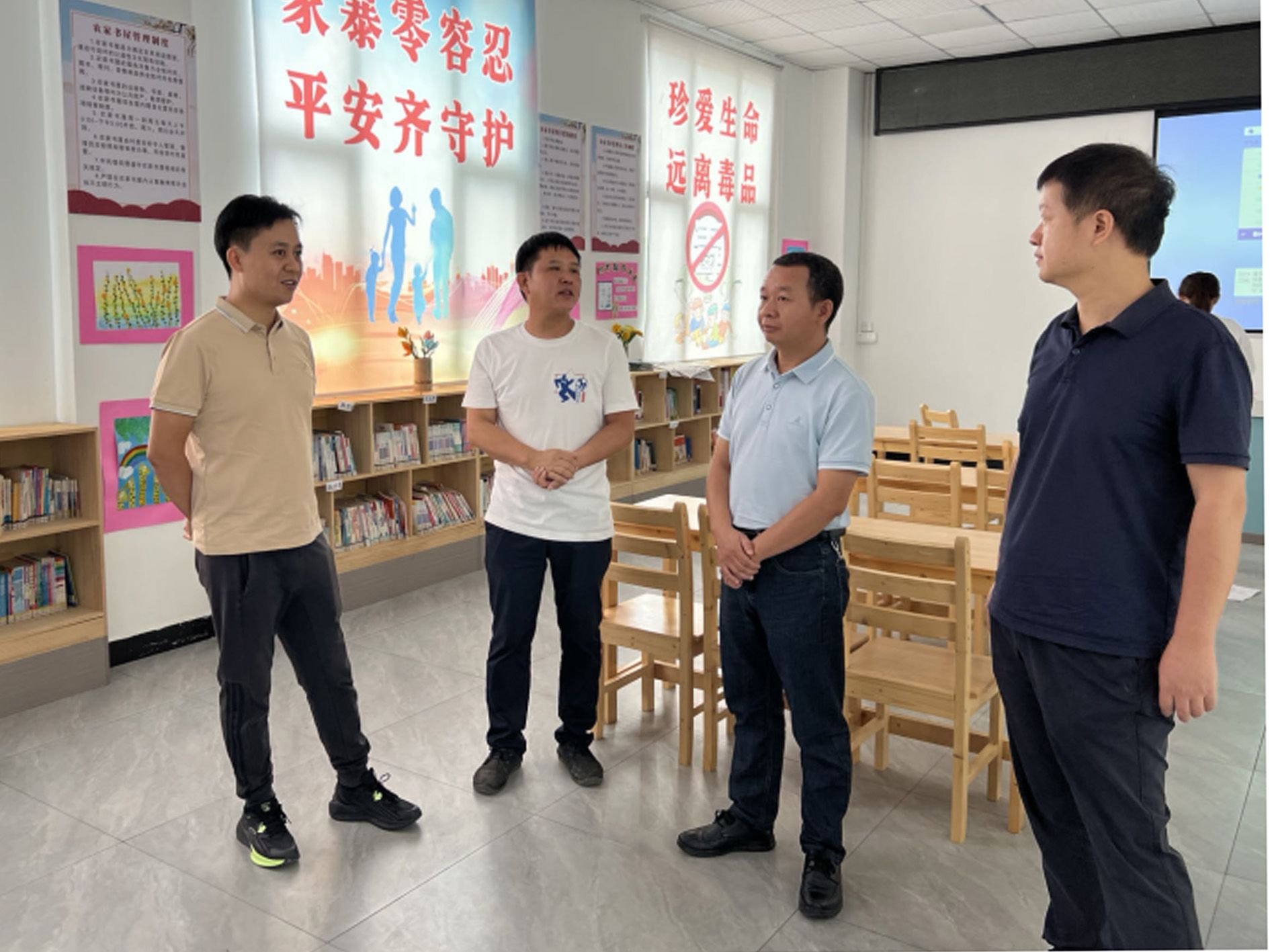 在对军二村的情况有了初步了解后,学院党委书记尹辉斌,副院长黄斯珉,党委副书记杨方代表学院向军二村党群服务中心图书室捐赠了一批科普图书,希望可以通过书中的科学家故事来弘扬科学家精神,点亮军二村儿童的科学梦想。