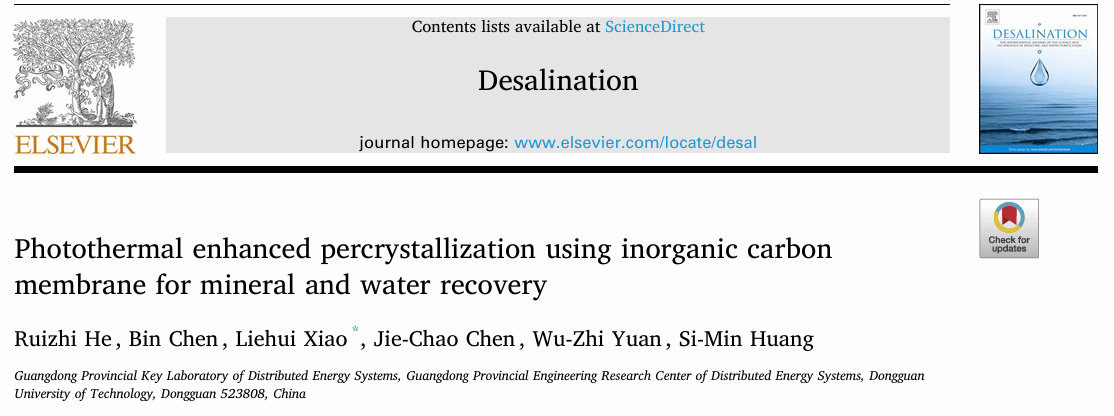 何睿智:“Photothermal enhanced percrystallization using inorganic carbon membrane for mineral and water recovery”