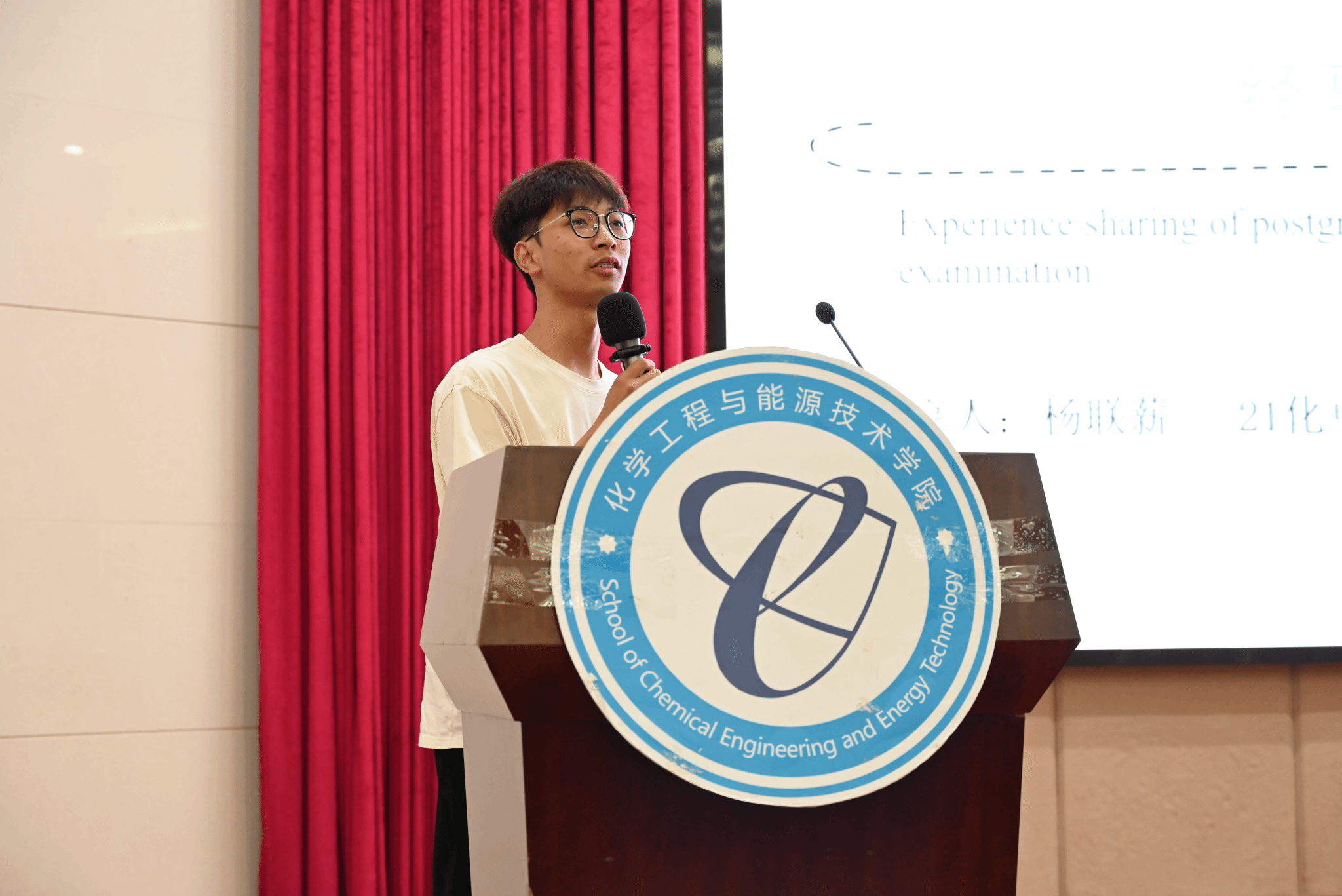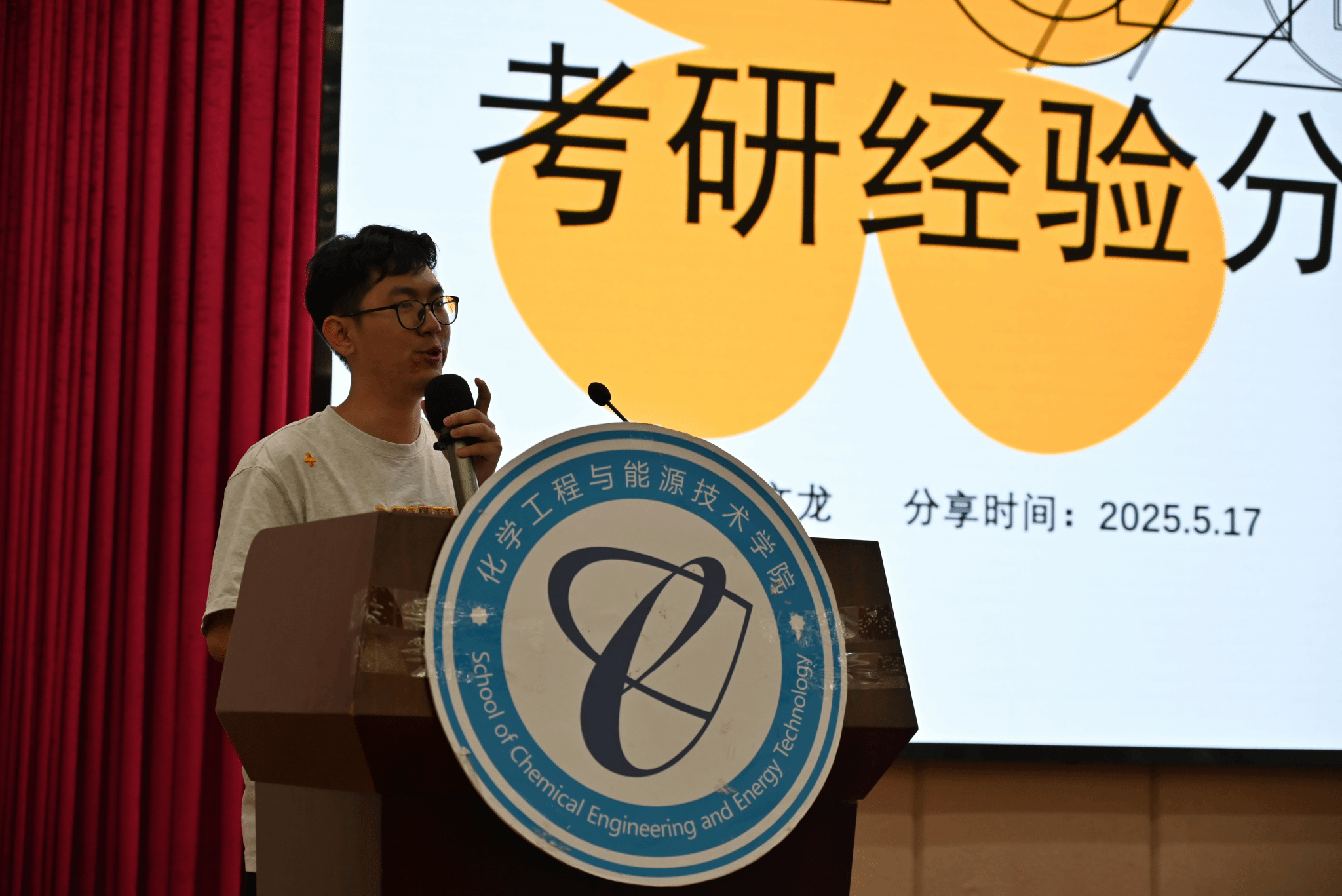 学工办主任袁志军老师和杨联新、邓文龙、戴华辉等3位考研上岸的同学受邀作就业指导及考研经验分享,学院2022级全体本科生参加会议。