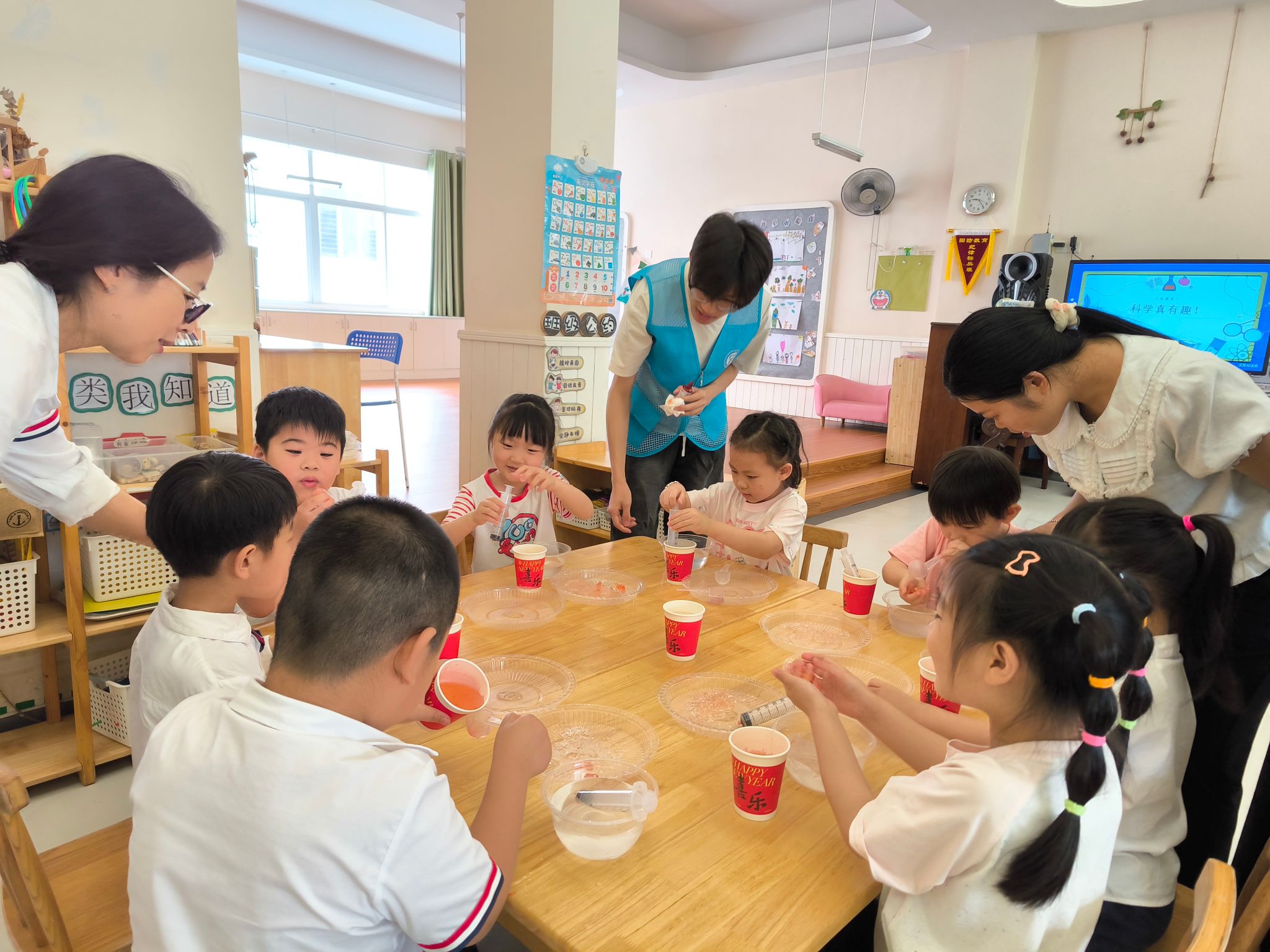 活动中,志愿者们用通俗易懂的语言,将抽象的化学实验原理转化为通俗易懂的生活常识,详细讲解了海藻酸钠与氯化钙反应形成水凝胶的科学原理,并手把手指导孩子们动手操作实验,让孩子们直观感受水凝胶的“魔法变身”过程。