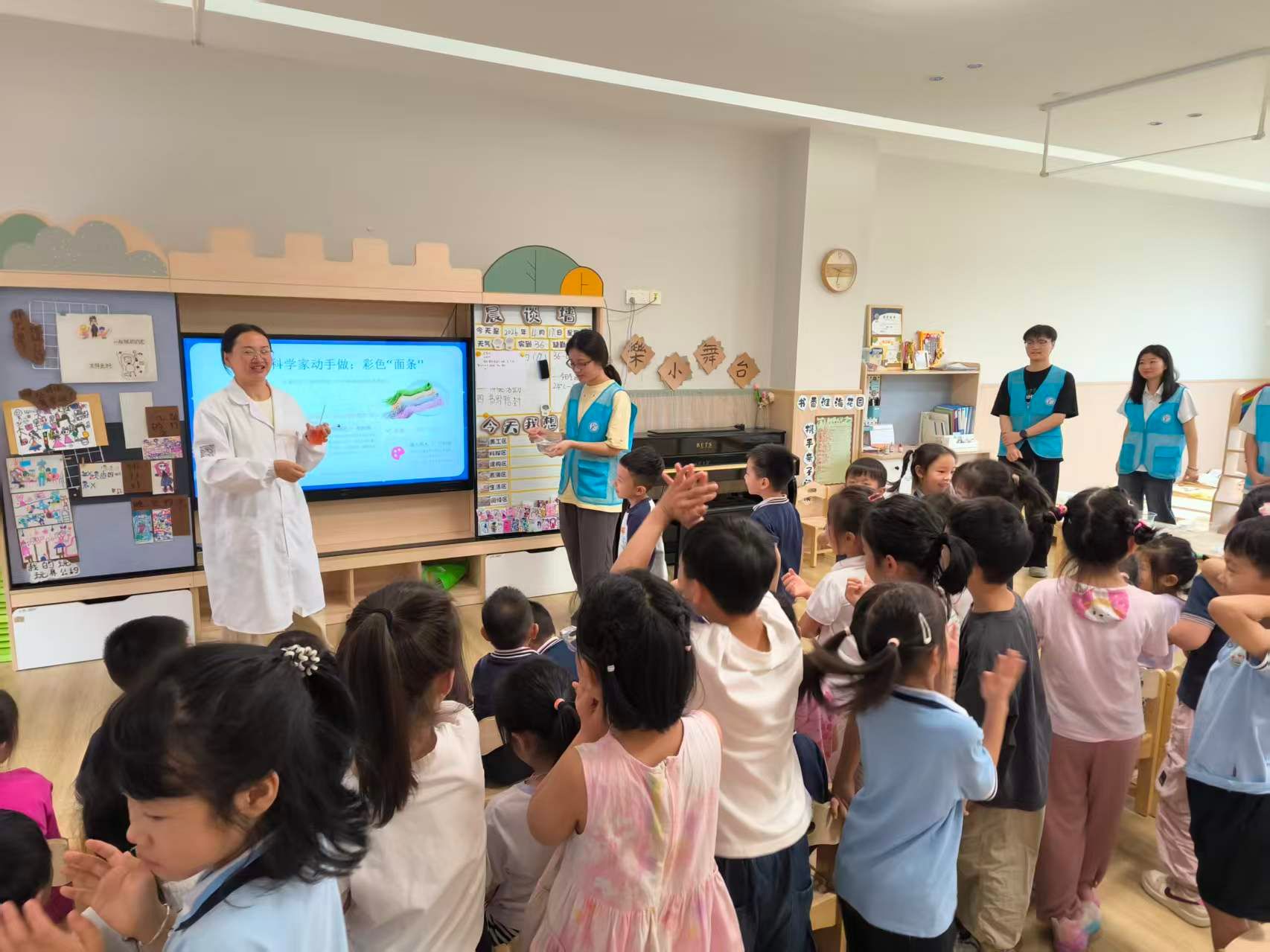 结合幼儿的认知特点和兴趣爱好,志愿者们精心设计活动方案,以趣味互动提问开场。