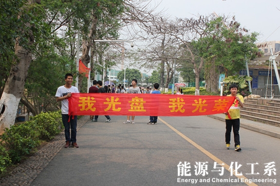 3月20日,能源与化工系13级化学工程与工艺1班全体同学带着印着“我光盘 我光荣”字样的横幅、大头笔等东西,前往松湖烟雨景区进行“光盘”活动的宣传。在活动过程中,志愿者们积极给游客们讲解和展示,使人们更加了解了“光盘”意义,让节约粮食的观念更加深入人心,促进人们养成节约的习惯。