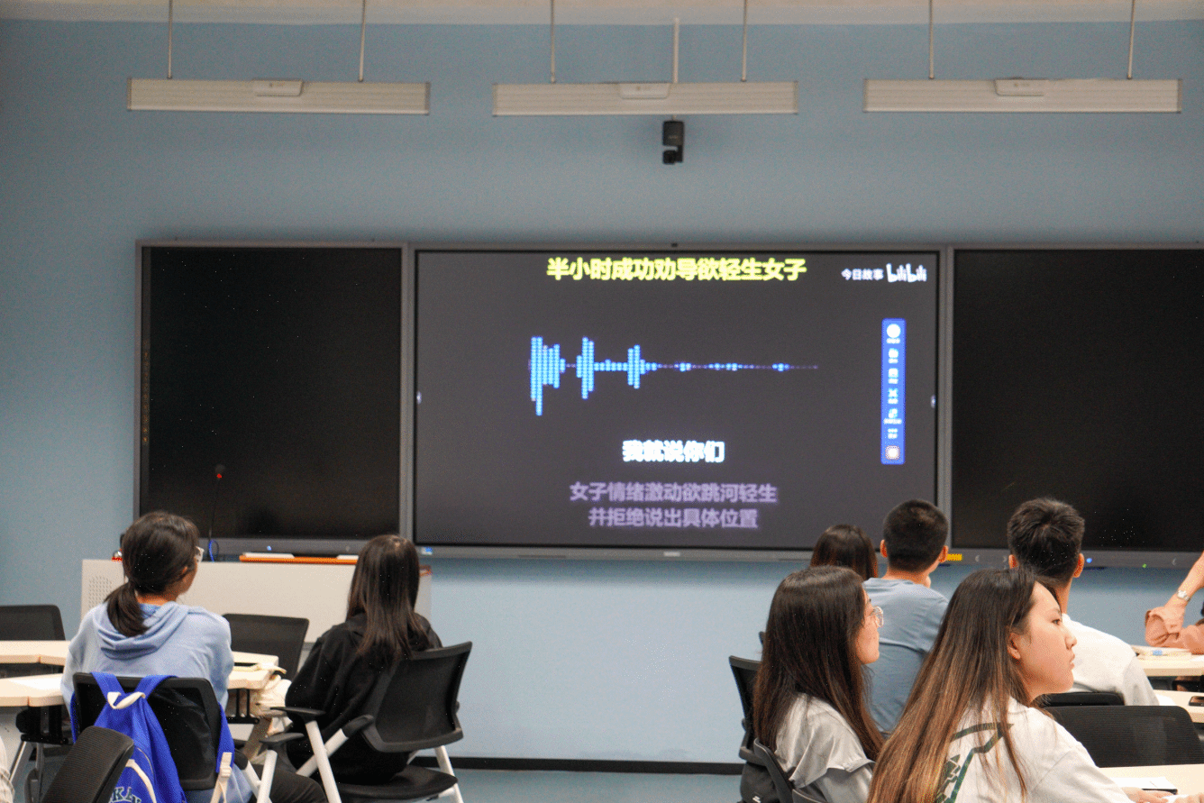 心理中心基本情况、案例分析、心理健康常识、心理委员日常工作等四个方面入手,以视频实例展示形式,让同学们深刻认识危机救助的重要意义。视频中劝导救助的情景让心理委员们深感触动,也更加强化自己的责任与使命。