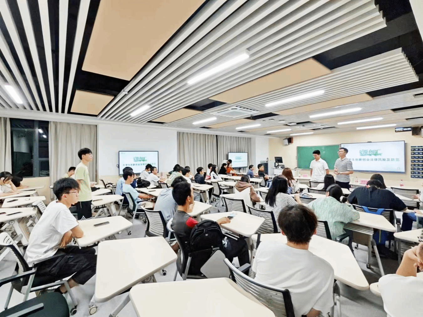 法律顾问邹学研律师做法律知识讲授,机械工程学院21级研究生肖创、环建学院20级本科生钟宇航做经验分享。学院党委副书记杨方、政治辅导员王馨以及学校党政办相关科室老师出席。