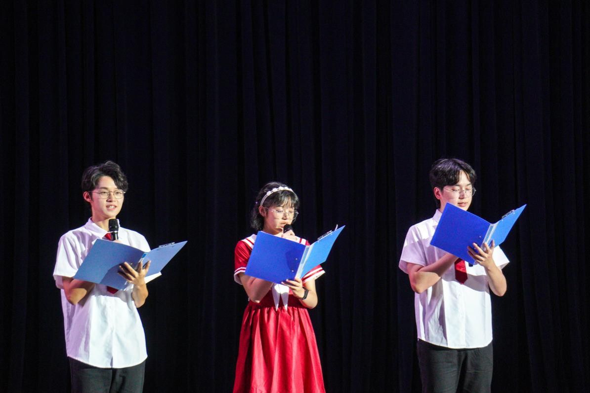 八名学生演绎了新一版本的情景朗诵《干惊天动地事、做隐姓埋名人》,慷慨激昂的诵词,道出新时代好青年对科学家的敬仰之意!