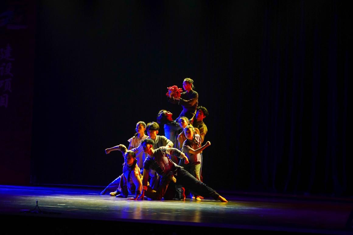 《红脐情》以东莞地域红色文化东江纵队革命母亲李淑桓送子参军为创作点,以母子之“脐”表达英雄母亲舐犊之情、家国情怀和革命胜利的理想信念,歌颂千千万万东江儿女在革命斗争中抛头颅、洒热血,留下了光照千秋的革命历史和革命精神。舞蹈演员们的舞姿优美动人,引人人胜,深沉而又灵动地晕染出一幅幅壮丽且充满浪漫色彩的革命史诗。这支由教育学院(师范学院)友情出演的舞蹈作品,具有强大艺术感染力和精神鼓舞价值,曾在广东省传统舞蹈大赛中获得专业组三等奖。在跌宕起伏的舞蹈画面中,引发了师生观众身临其境般的沉浸与共鸣。