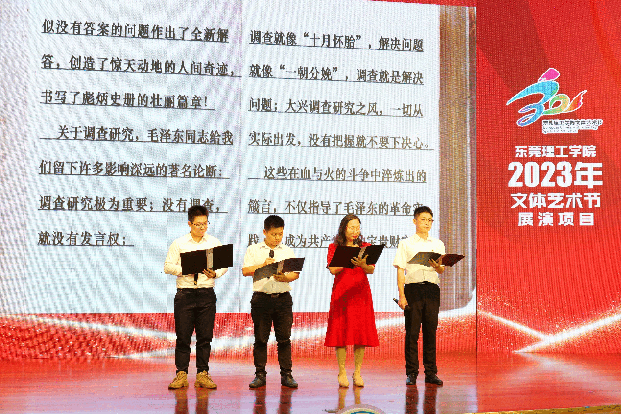 “五四青年奖章”的锂工正极团队师生代表李超、李利平、杨浩、周全诵读了《光明日报》刊登的经典文章《让大地赋我们无穷力量——写在全党大兴调查研究之际》,阐述调查研究的内涵。
