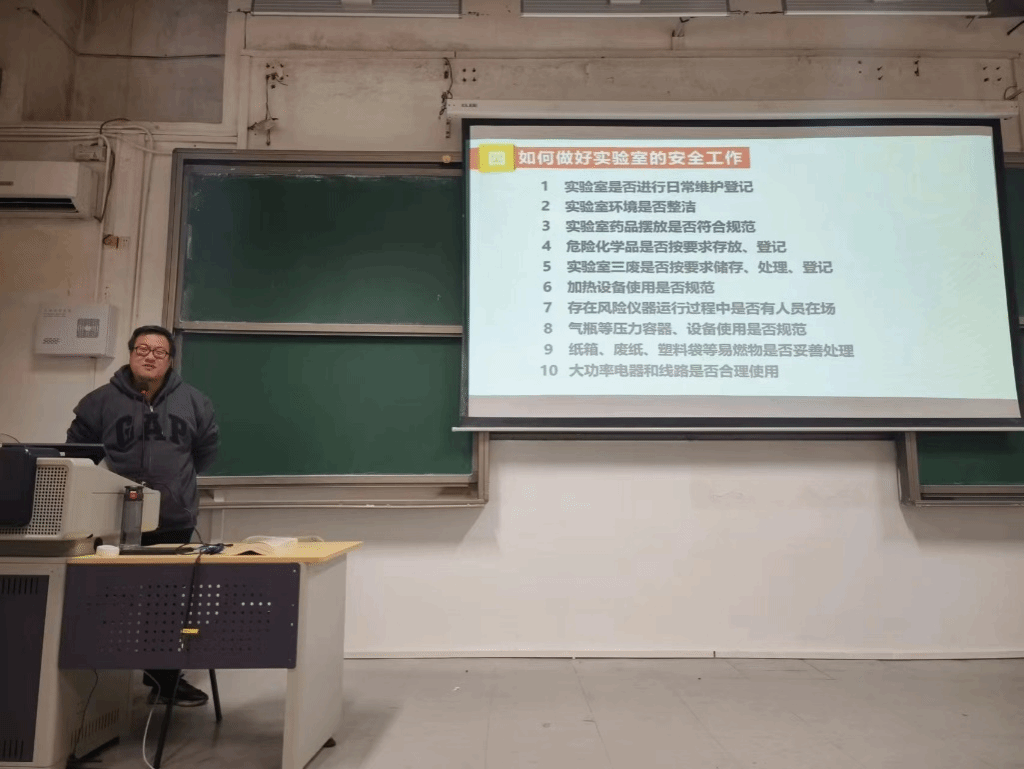 会上,政治辅导员谢真葵详细从消防安全、财产安全、交通安全、宿舍用水用电等方面强调了留校期间的有关安全注意事项。学院实验室中心钟国玉主任就如何做好实验室安全进行了专题培训。