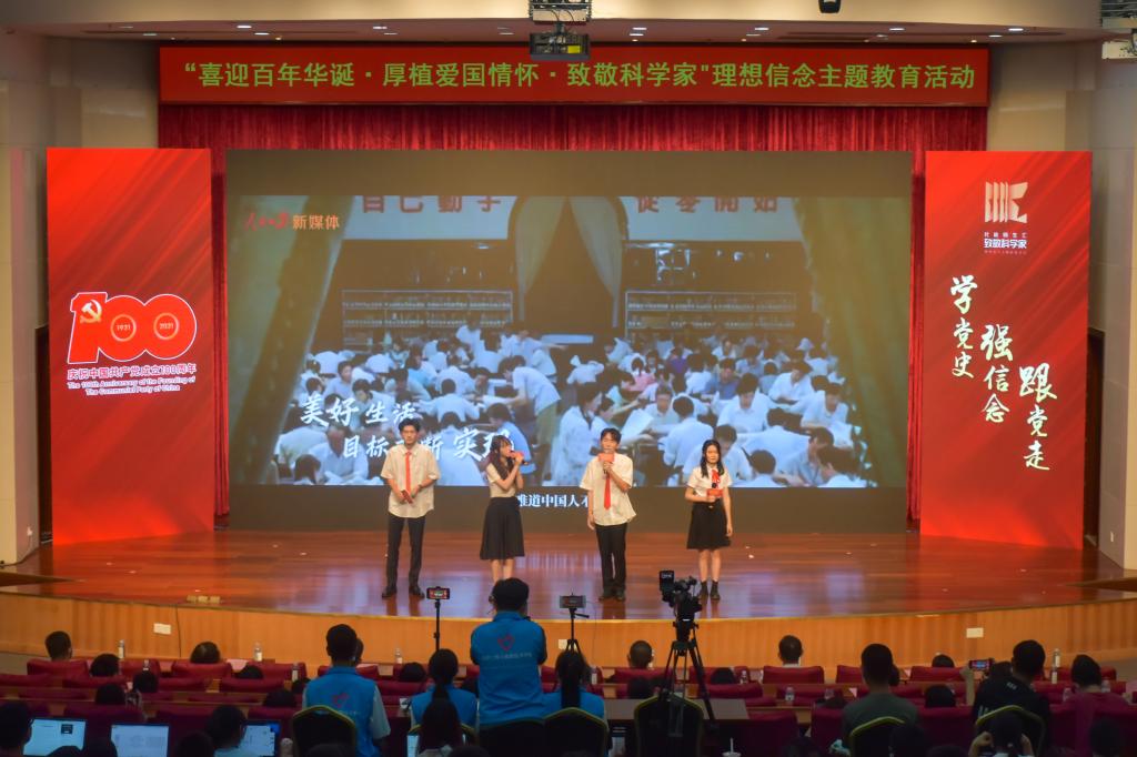 文化艺术节展演项目之“喜迎百年华诞•厚植爱国情怀•致敬科学家”理想信念主题教育活动在学术会议中心报告厅隆重举行,并在B站互联网线上实时直播。本次活动由蘑菇视频