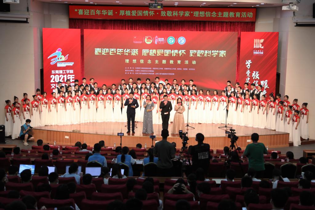 一个个科学经典,一首首歌曲,一幅幅画,一份份激情与热血,一群莞工青年那热枕滚烫的内心道出了万千学子为国家贡献一份持久而坚定的信念。舞台上璀璨的灯光,就像前进的灯塔,照亮莞工青年学子的青春和梦想。