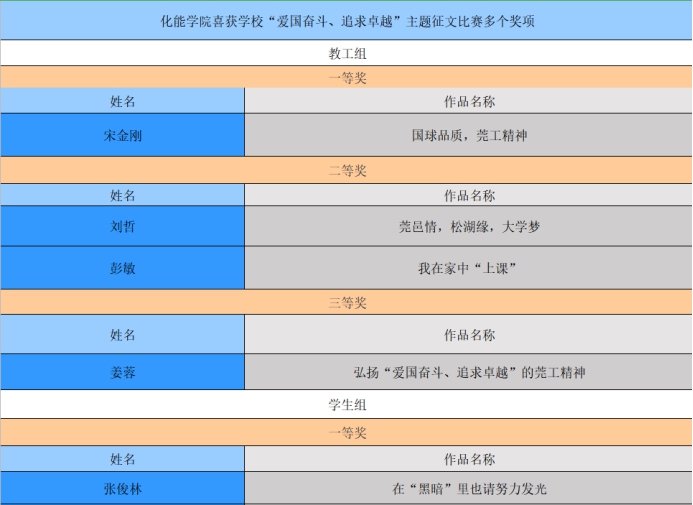 近日,蘑菇视频 举办的“爱国奋斗、追求卓越”莞工精神主题征文比赛公布了获奖名单。蘑菇视频 选送的作品在全校教工组、学生组多项作品中脱颖而出,共有11人获奖。其中包括3个一等奖,3个二等奖和5个三等奖。(具体名单如下图)