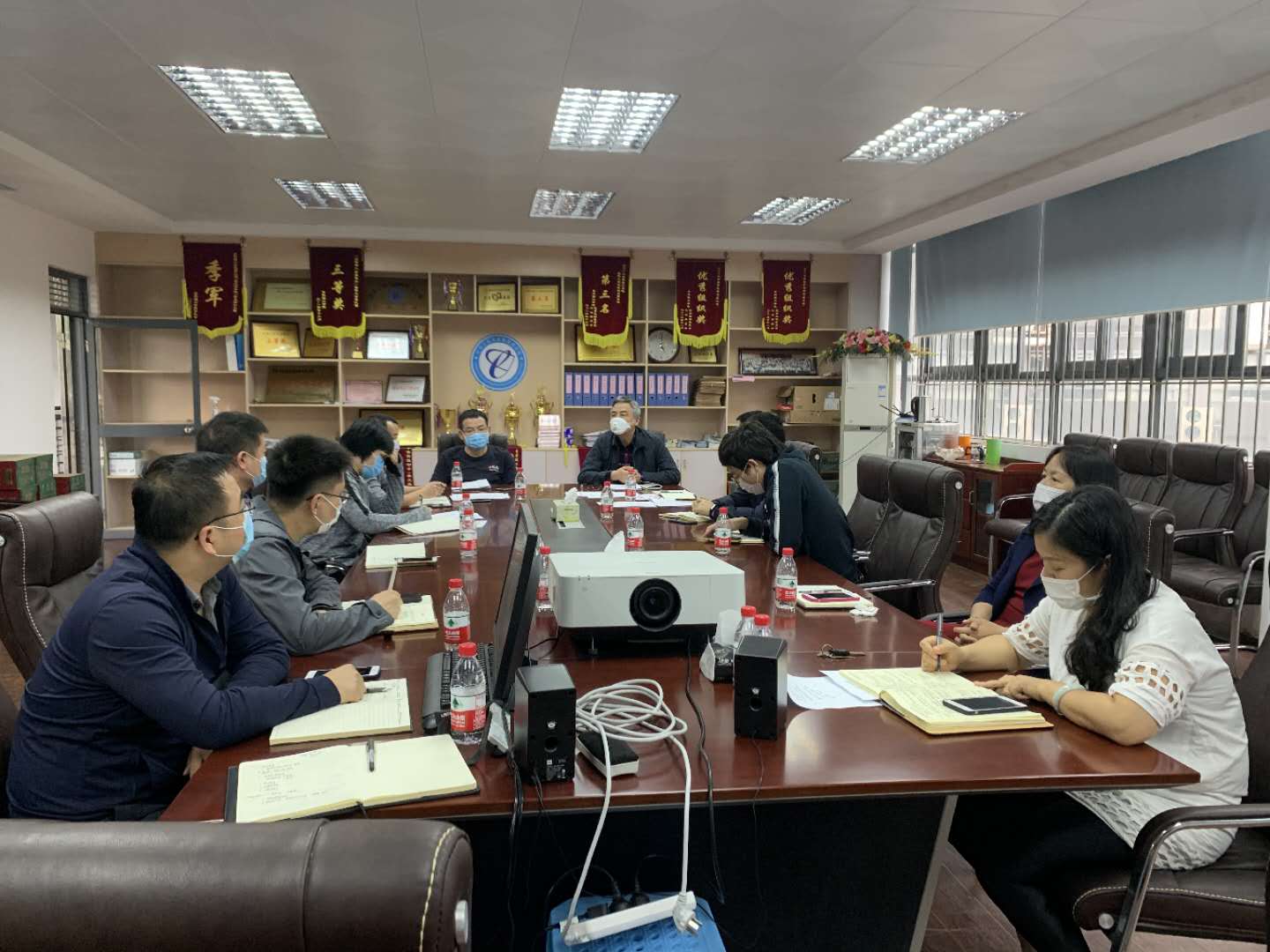 在12L103召开工作会议,传达学校统筹推进新冠肺炎疫情防控与年度重点工作部署会议的精神和要求,并部署2020年学院的相关工作。学院党政班子成员和各系主任参加了本次会议。会议由院长徐勇军主持。