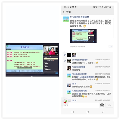 任课教师都圆满完成了线上教学任务,学生对线上直播讲课有很大兴趣,比想象要积极主动,反响较好。2017级应化专业的蔡昭楚表示“爱上了网课”,他说“这样上网课很有趣,特别是邵教授讲课很幽默,很有直播网红范儿。”