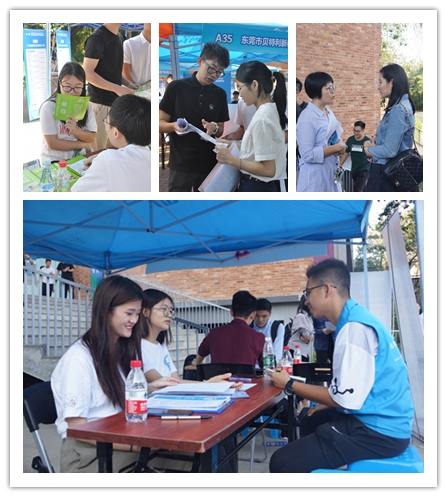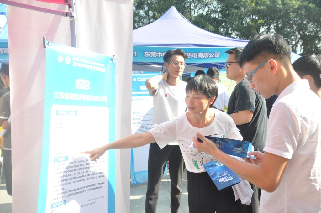 于松山湖校区学生中心学思广场举办了2019年毕业生专场招聘会。本次招聘会吸引了新奥集团股份有限公司、中储粮油脂工业东莞有限公司、东莞粤丰环保电力有限公司等近80家行业内的优质企业前来招聘,与去年相比增加60多家,招聘岗位达200多个,此次招聘会吸引学院300多毕业生带着简历来到现场面试。本次招聘会不仅为企业提供了输送优秀人才的平台,也为应届毕业生提供了更多就业工作机会,助力2020届毕业生顺利实现就业。
