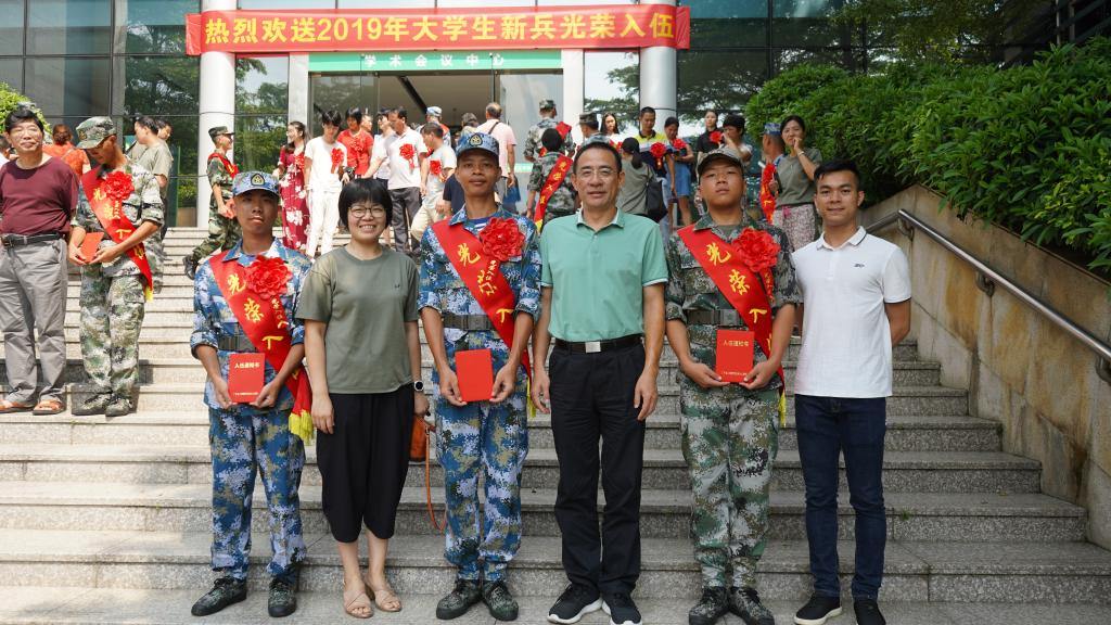 入伍学生代表合影留念。9月11日上午十点半,蘑菇视频