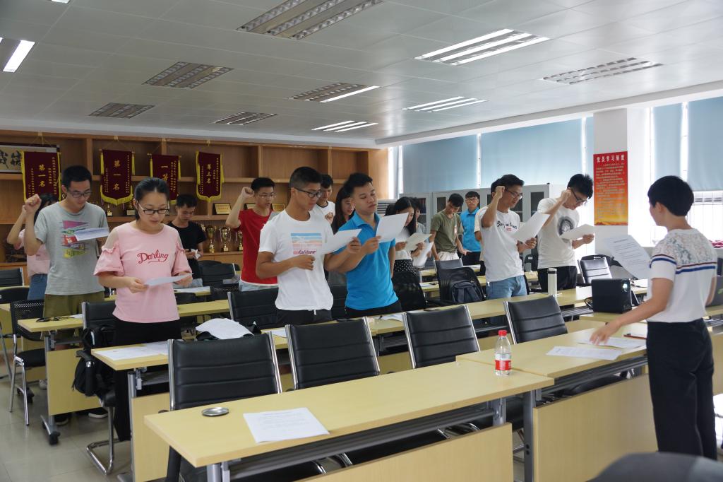 会议上,各贷款毕业生确认贷款表信息无误后,涂叶满老师作为本次座谈会的主讲人,通过视频为同学们介绍了贷款还款的基本信息,并指出了关于贷款还款需注意的地方。同学们针对贷款还款的相关问题进行提问,涂叶满老师对此耐心作了详细的解答。最后同学们签订了相关的承诺书并全体起立宣读承诺书。