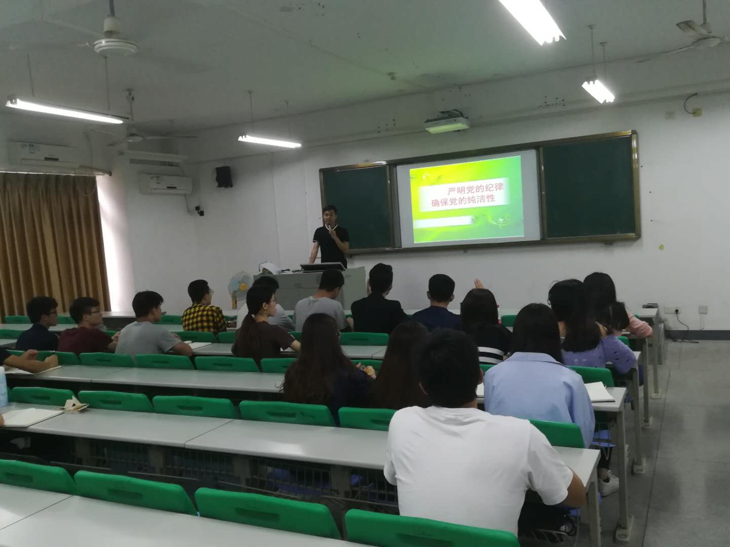 本次培训以“严明党的纪律,确保党的纯洁性”为主题,向大家介绍了作为一名预备党员应该如何严格要求自己,遵守党的纪律。培训当中,谢真葵分别从“学习和强调党的纪律的重要意义”、“党的纪律的基本内容和违反党纪的主要表现”以及“增强党纪观念,自觉维护党的纪律”三个方面进行了详细生动的讲解。预备党员们认真听讲,课堂学习氛围浓厚。