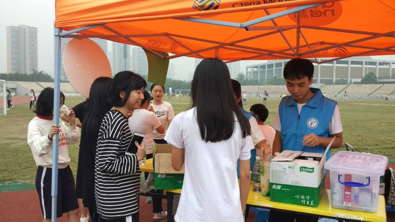 为了给在运动场体测同学做好储物、医疗、补给工作,弘扬青年志愿者“奉献,友爱,互助,进步”的志愿服务精神,化能蘑菇视频 志愿服务站组织志愿者于2017年11月18、19日在运动场为参加体测的同学补给能量。