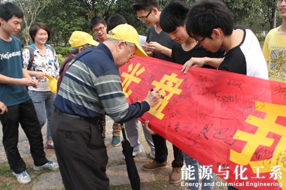3月20日,能源与化工系13级化学工程与工艺1班全体同学带着印着“我光盘 我光荣”字样的横幅、大头笔等东西,前往松湖烟雨景区进行“光盘”活动的宣传。